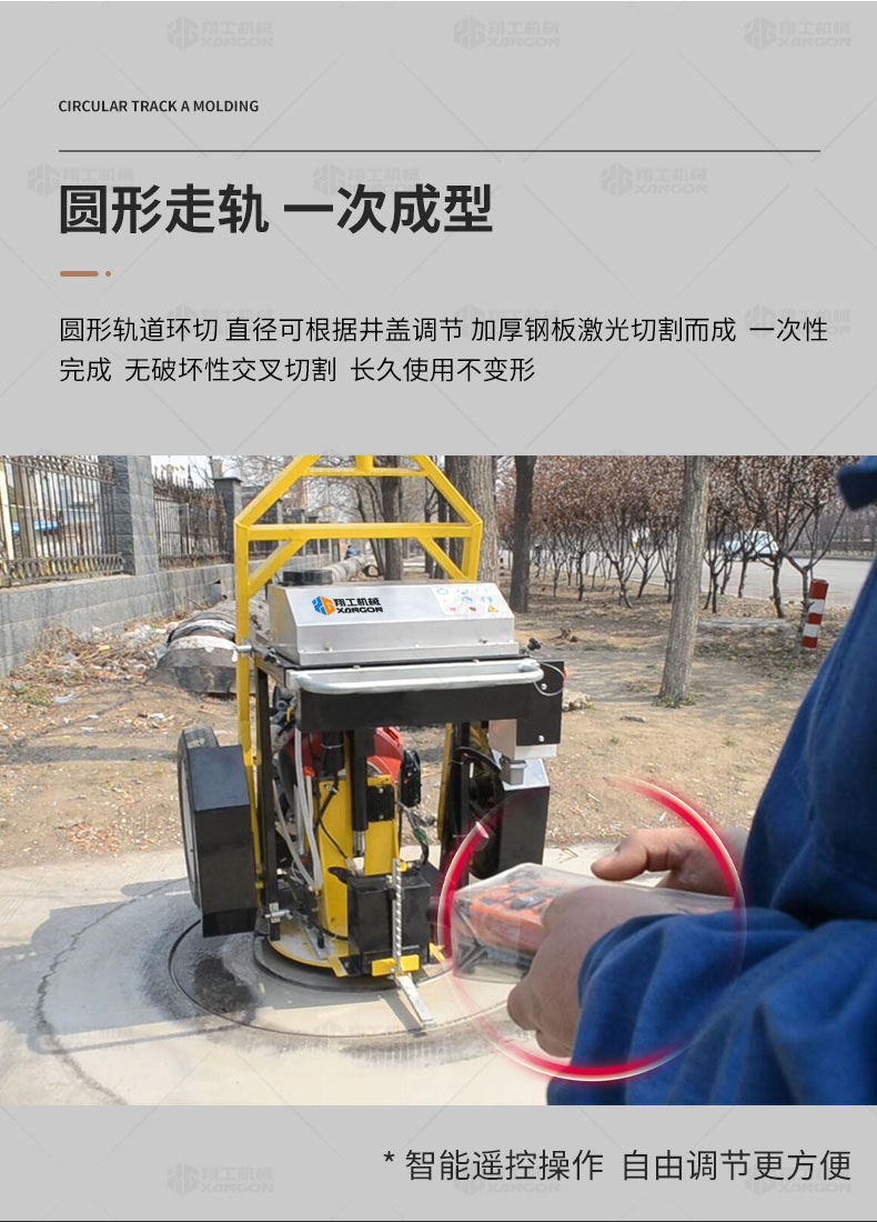 全自动井盖圆周91免费版视频专门用于对城市道路中机动车道等井盖周围的水泥混凝土或沥青路面进行圆形切割。为清除井盖周围的破损路面提供分割区域,恢复后的地面美观,延长了路面的使用寿命。